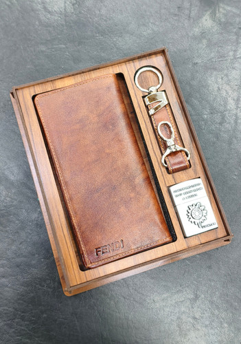 ست چرم طبیعی کیف پول بلند با فندک و جاکلیدیناموجود
