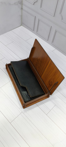 ست ۲ تیکه چرم طبیعی جعبه چوبی کمربند و کیف پولناموجود