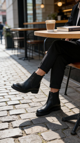 نیم بوت ساق کوتاه دو طرف کش چرم صنعتی