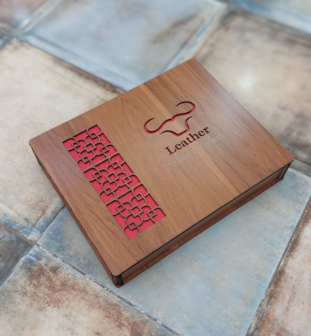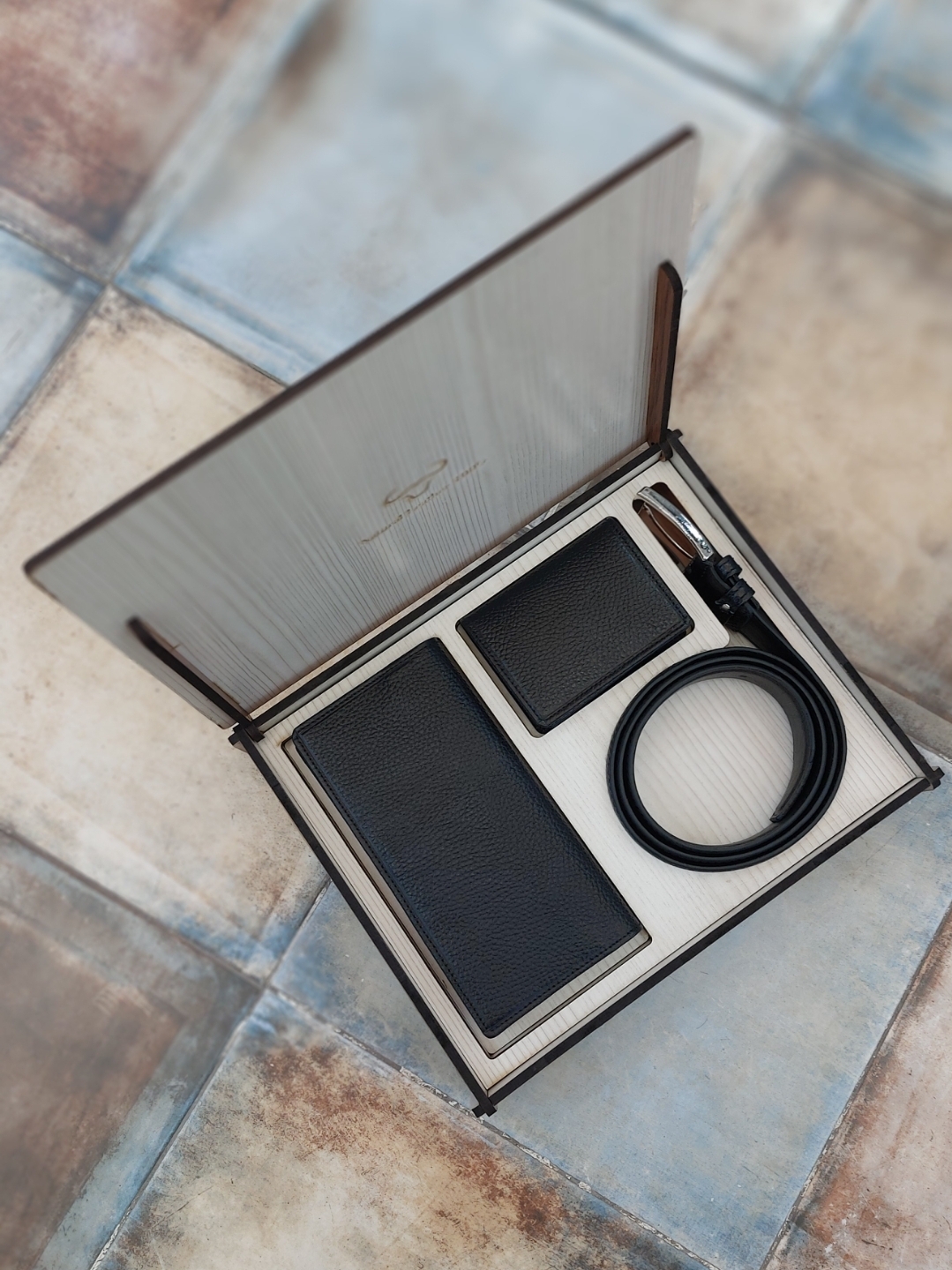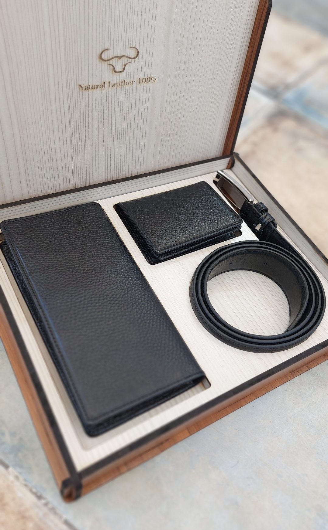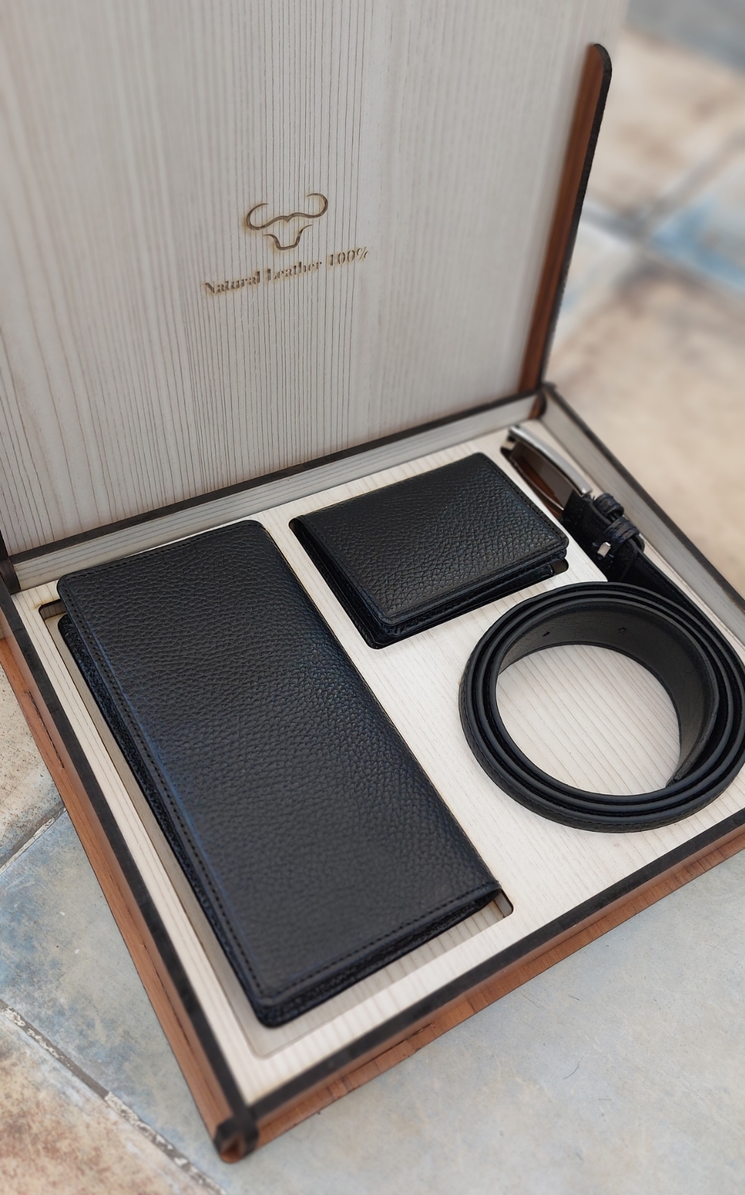 ست جعبه چوبی 3 تیکه چرم طبیعی