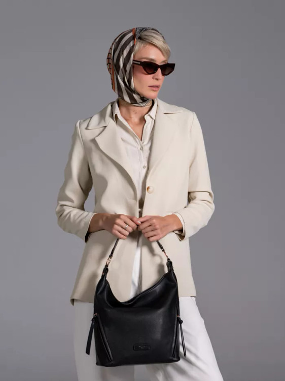 دو زیپ جانبی بلند با آویز tassel برای جلوه بیشتر و باز شدنِ ظریفِ قسمت بالا