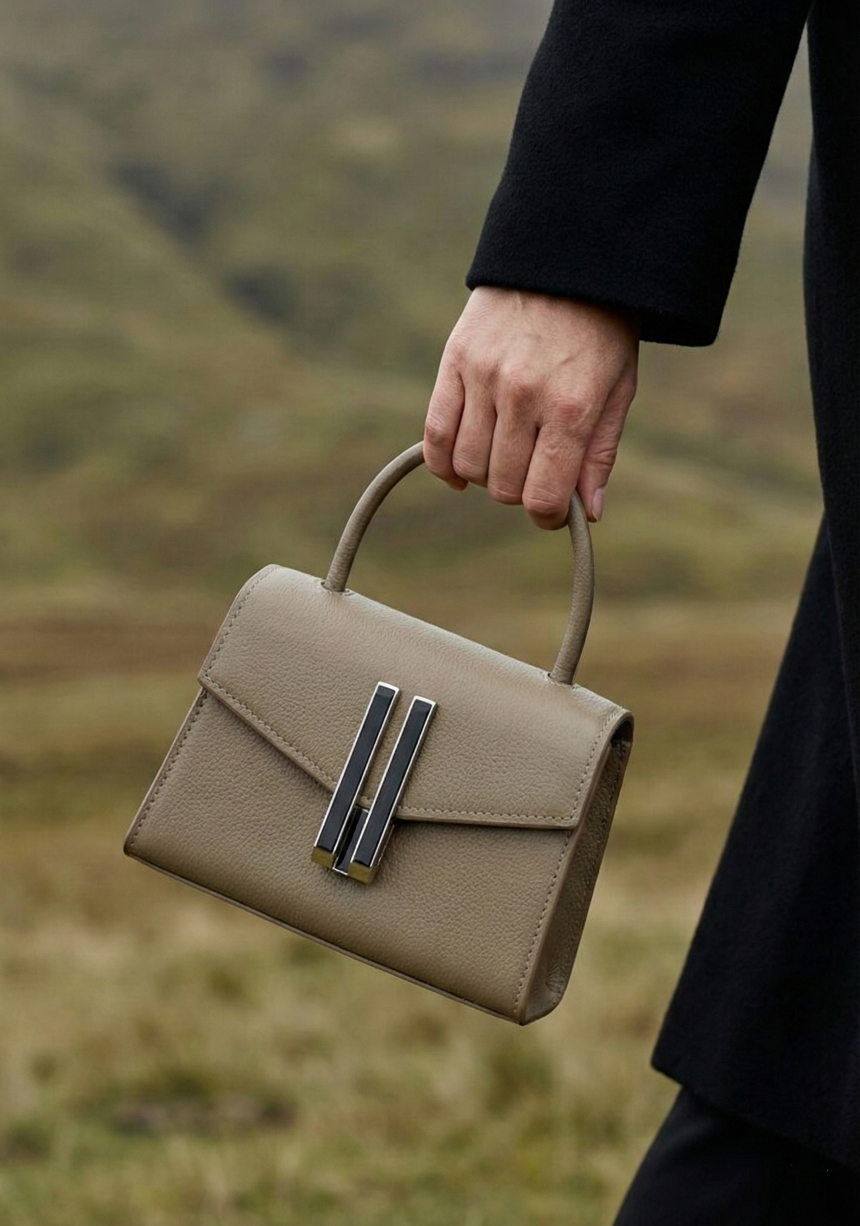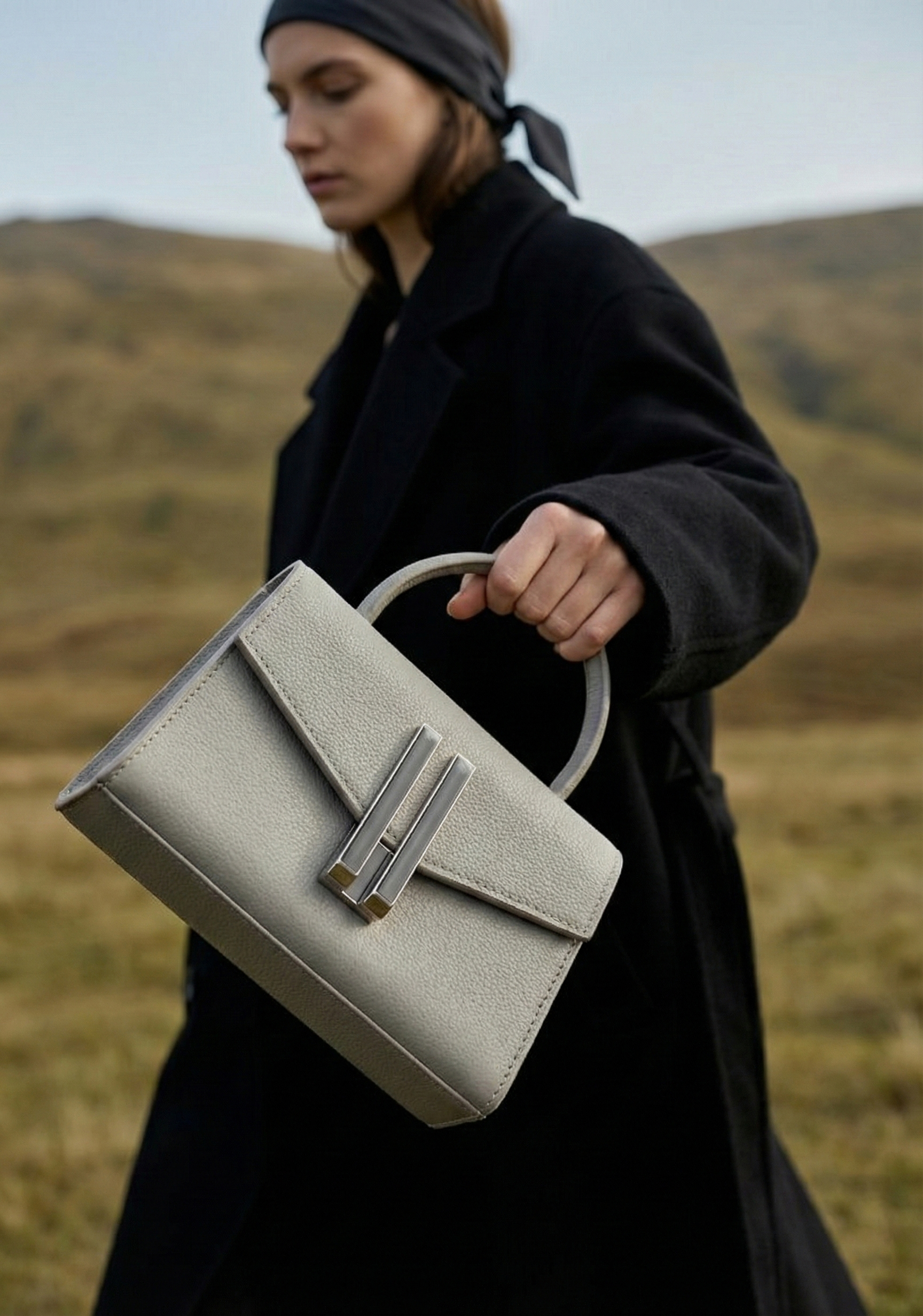 انگار در موزه مُد گشوده شده و شما نه یک کیف، بلکه يک اثر هنری کوچک و متحرک را در دستانتان میگيريد! اينجاست که جادو آغاز میشود. تصوّر کنيد که نور خورشيد عصرگاهی روی بافت دانهدانه چرم گاوی، که همچون نقشه راهی به سوی ظرافت است، مینشيند. آنگاه نگاهتان به سمت دو ستون فلزی عمودی، که در میانهی درب کیف، مانند دو محافظ قدرتمند و شیک ایستادهاند، خیره میشود. آنها نه تنها یک قفل، بلکه پلی هستند که شما را از روزمرگی جدا میکنند و به قلمرویی از اعتماد به نفس و استایل بیزمان میبرند. با ابعاد ۱۸ در ۸.۵ در ۱۴ سانتیمتر، اين کیف چرم زنانه دستی کوچک، تمام آن چیزی است که برای درخشش لازم دارید؛ نه بزرگ است که دست و پا گير شود و نه کوچک که نادیده گرفته شود. او فقط کامل است، در رنگهایی چون مشکی رازآلود، کرمِ ملایم، نسکافهایِ گرم، و چریِ جسور موجود است تا هر کدام، داستانِ خاصِ شما را روایت کنند.
